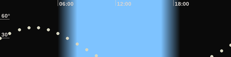 Höchster Stand (Kulmination)03:33 Uhr (h=47.2°)