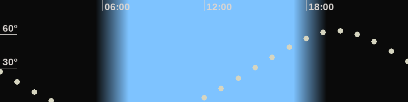 Höchster Stand (Kulmination)19:44 Uhr (h=63.1°)