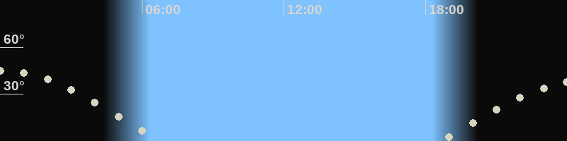 Höchster Stand (Kulmination)00:09 Uhr, (h=45.4°)