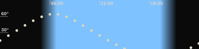 Höchster Stand (Kulmination)06:24 Uhr (h=64.3°)