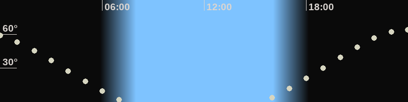 Höchster Stand (Kulmination)23:49 Uhr (h=63.9°)