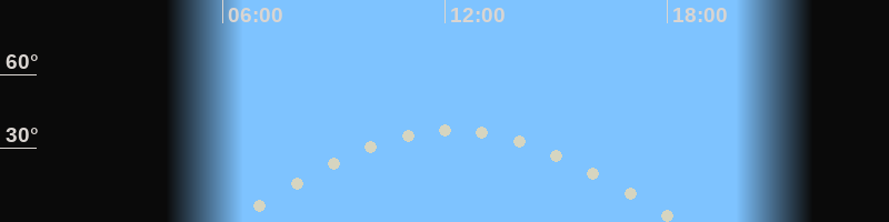 Höchster Stand (Kulmination)12:04 Uhr (h=36.7°)