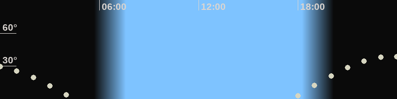 Höchster Stand (Kulmination)23:33 Uhr (h=38.3°)