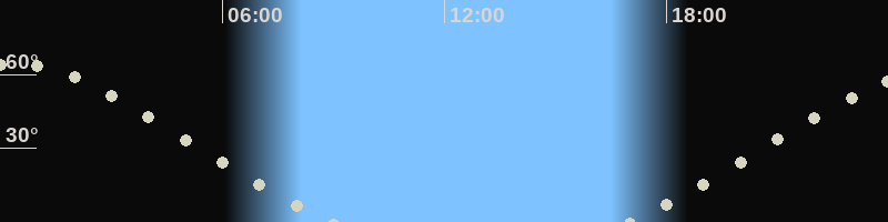 Höchster Stand (Kulmination)00:22 Uhr (h=64.4°)