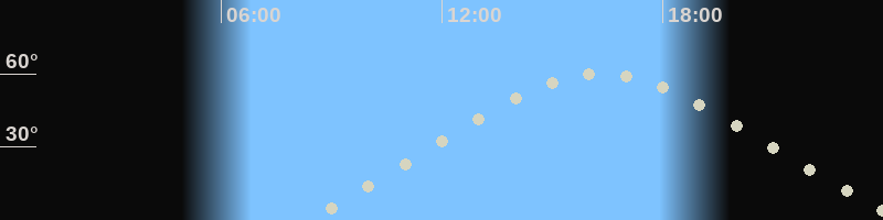 Höchster Stand (Kulmination)16:14 Uhr (h=59.7°)
