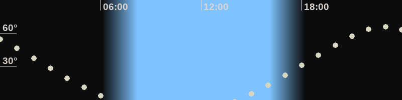 Höchster Stand (Kulmination)22:55 Uhr (h=66.1°)