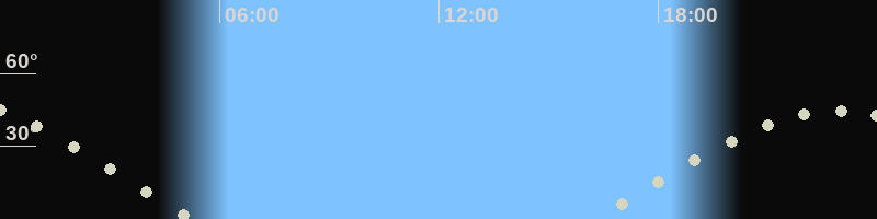 Höchster Stand (Kulmination)22:59 Uhr (h=44.8°)