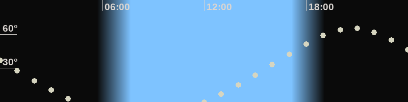 Höchster Stand (Kulmination)20:41 Uhr (h=65.4°)