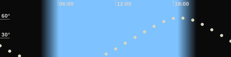 Höchster Stand (Kulmination)18:40 Uhr (h=62.2°)