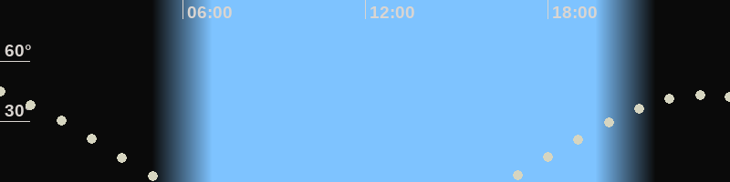 Höchster Stand (Kulmination)23:12 Uhr (h=44°)