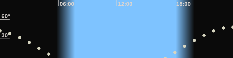 Höchster Stand (Kulmination)23:46 Uhr (h=47.8°)