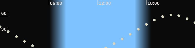 Höchster Stand (Kulmination)21:09 Uhr (h=62.3°)