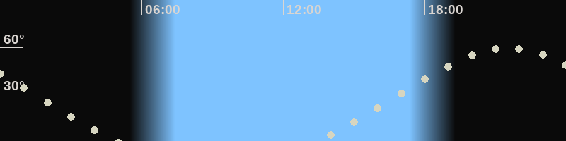 Höchster Stand (Kulmination)21:32 Uhr (h=59.7°)