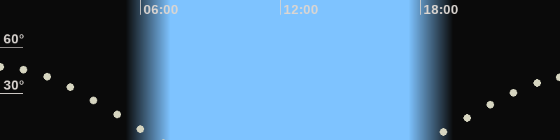 Höchster Stand (Kulmination)00:02 Uhr, (h=47.5°)