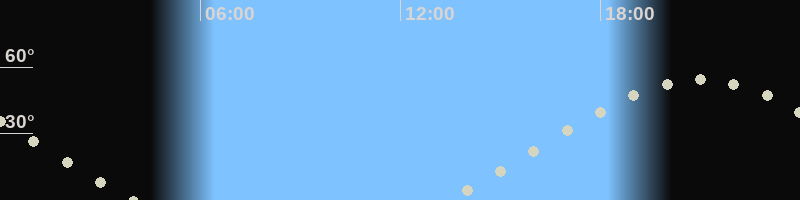 Monduntergang03:59 Uhr im Nordwesten (αAz = 299°)