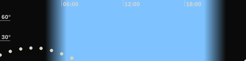 Monduntergang07:36 Uhr im Südwesten (αAz = 238.4°)