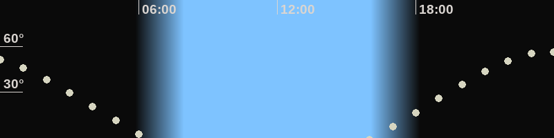 Höchster Stand (Kulmination)23:42 Uhr (h=56.3°)