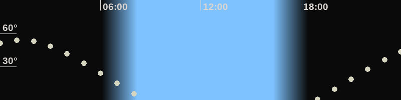 Höchster Stand (Kulmination)01:15 Uhr (h=54.2°)