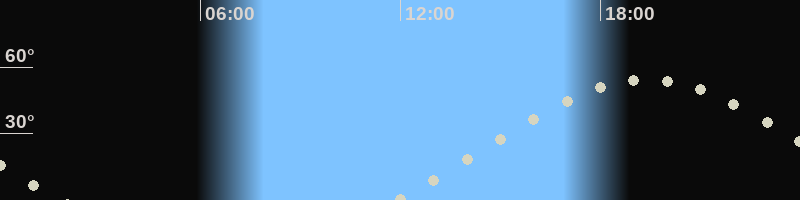 Höchster Stand (Kulmination)19:21 Uhr (h=54.3°)