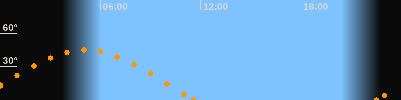 Höchster Stand (Kulmination)05:05 Uhr (h = 44.8°)