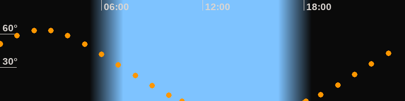 Höchster Stand (Kulmination)02:30 Uhr (h = 63.6°)