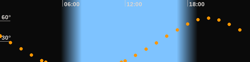 Höchster Stand (Kulmination)19:59 Uhr (h = 63.9°)