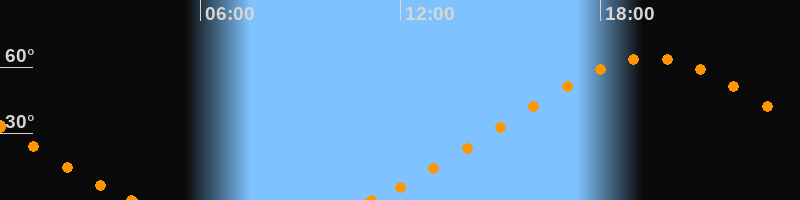 Höchster Stand (Kulmination)19:30 Uhr (h = 64.3°)