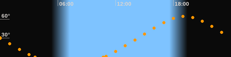 Höchster Stand (Kulmination)19:08 Uhr (h = 64.6°)