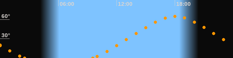 Höchster Stand (Kulmination)18:00 Uhr (h = 64.9°)