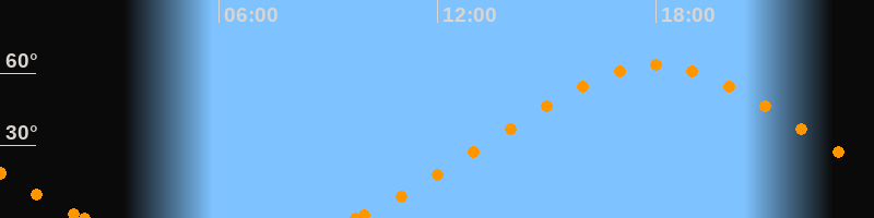 Höchster Stand (Kulmination)18:00 Uhr (h = 63.2°)