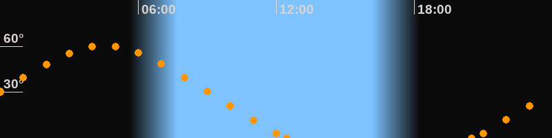 Höchster Stand (Kulmination)04:30 Uhr (h = 60.5°)