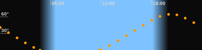 Höchster Stand (Kulmination)20:15 Uhr (h = 64.7°)