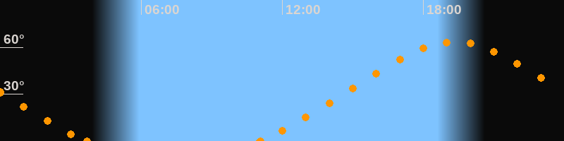 Höchster Stand (Kulmination)19:20 Uhr (h = 63.5°)