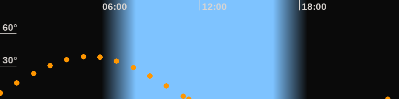Höchster Stand (Kulmination)05:21 Uhr (h = 38.7°)