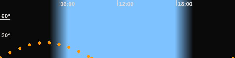 Aufgang23:48 Uhr im Südosten (αAz = 113.9°)