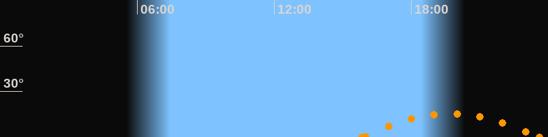 Untergang23:38 Uhr im Südwesten (αAz = 231.3°)