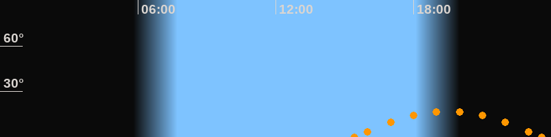 Untergang23:35 Uhr im Südwesten (αAz = 234.2°)