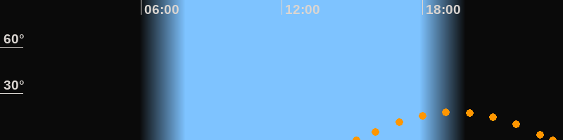 Untergang23:34 Uhr im Südwesten (αAz = 236.2°)