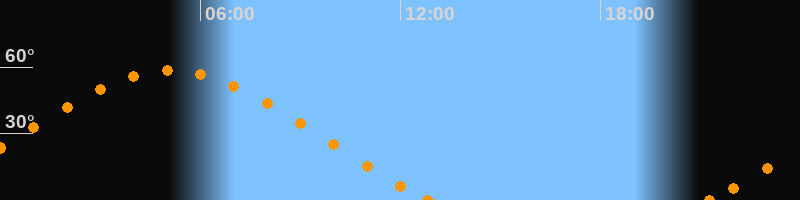 Höchster Stand (Kulmination)05:05 Uhr (h = 58.5°)