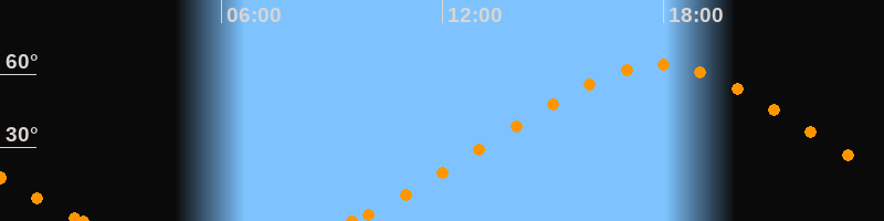 Höchster Stand (Kulmination)17:53 Uhr (h = 63.8°)
