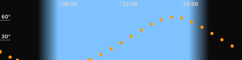Höchster Stand (Kulmination)17:14 Uhr (h = 64.5°)