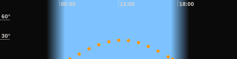 Höchster Stand (Kulmination)12:16 Uhr (h = 29°)