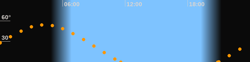 Höchster Stand (Kulmination)04:15 Uhr (h = 54.4°)