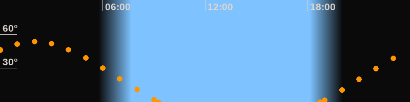 Höchster Stand (Kulmination)02:03 Uhr (h = 53.5°)