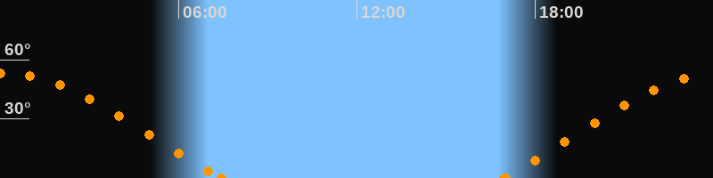 Höchster Stand (Kulmination)00:09 Uhr (h = 53°)