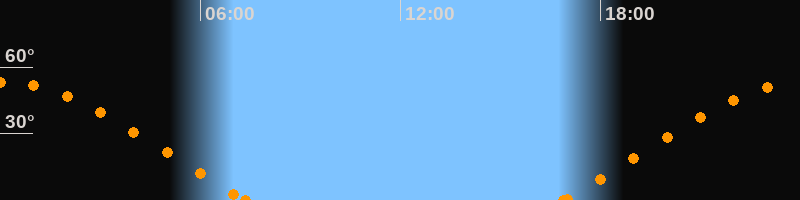 Höchster Stand (Kulmination)00:05 Uhr (h = 53°)