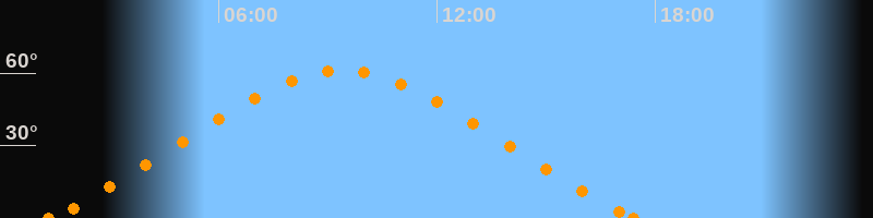 Höchster Stand (Kulmination)09:24 Uhr (h = 61.1°)