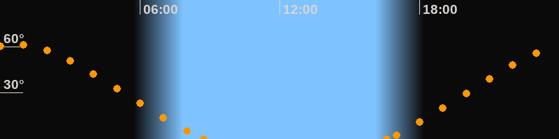 Höchster Stand (Kulmination)00:37 Uhr (h = 61.4°)