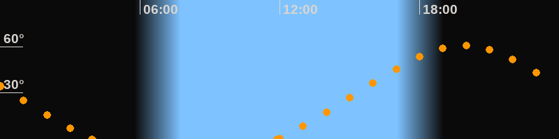Höchster Stand (Kulmination)19:52 Uhr (h = 60.9°)