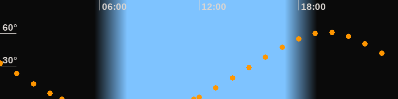 Höchster Stand (Kulmination)19:40 Uhr (h = 61°)